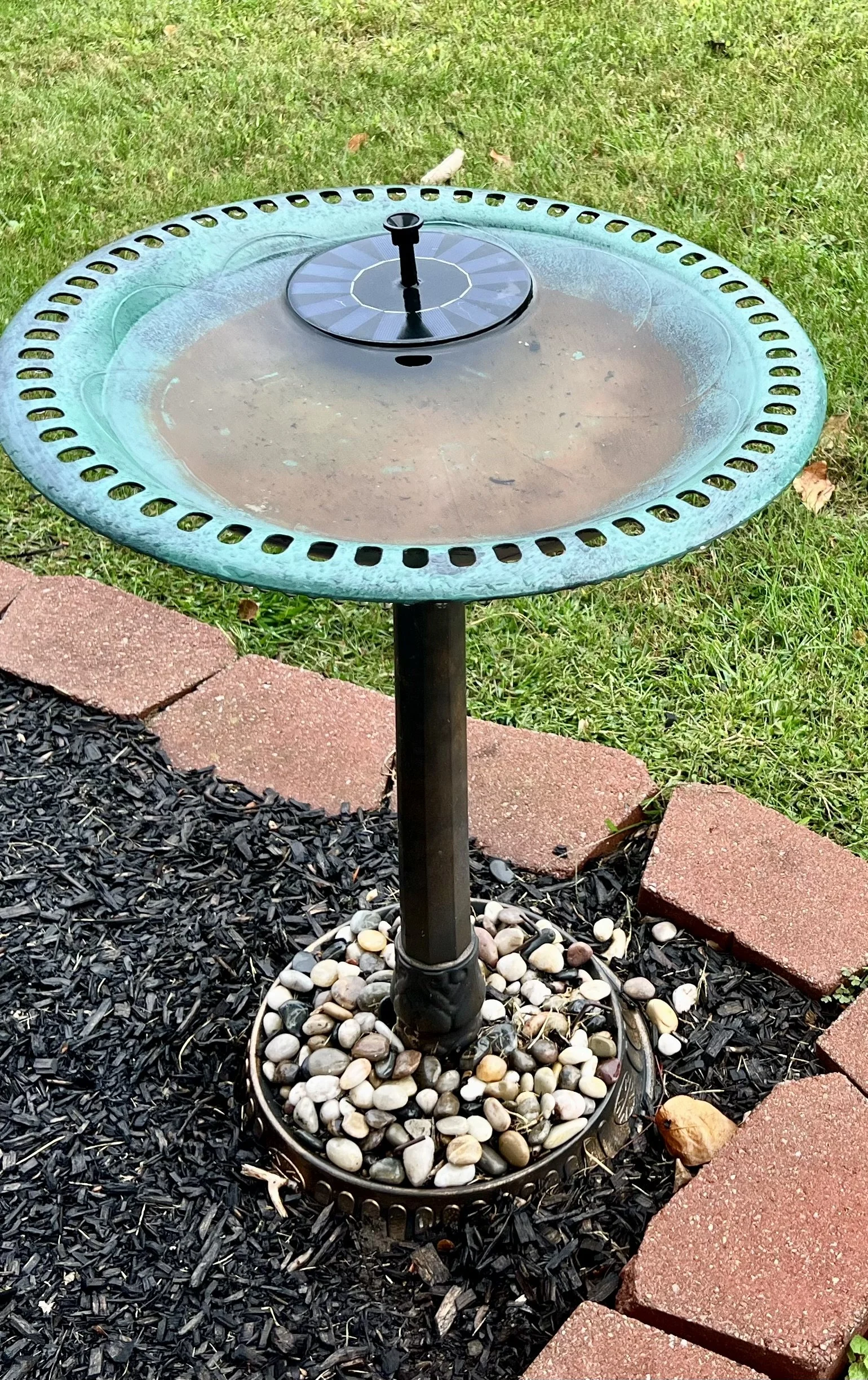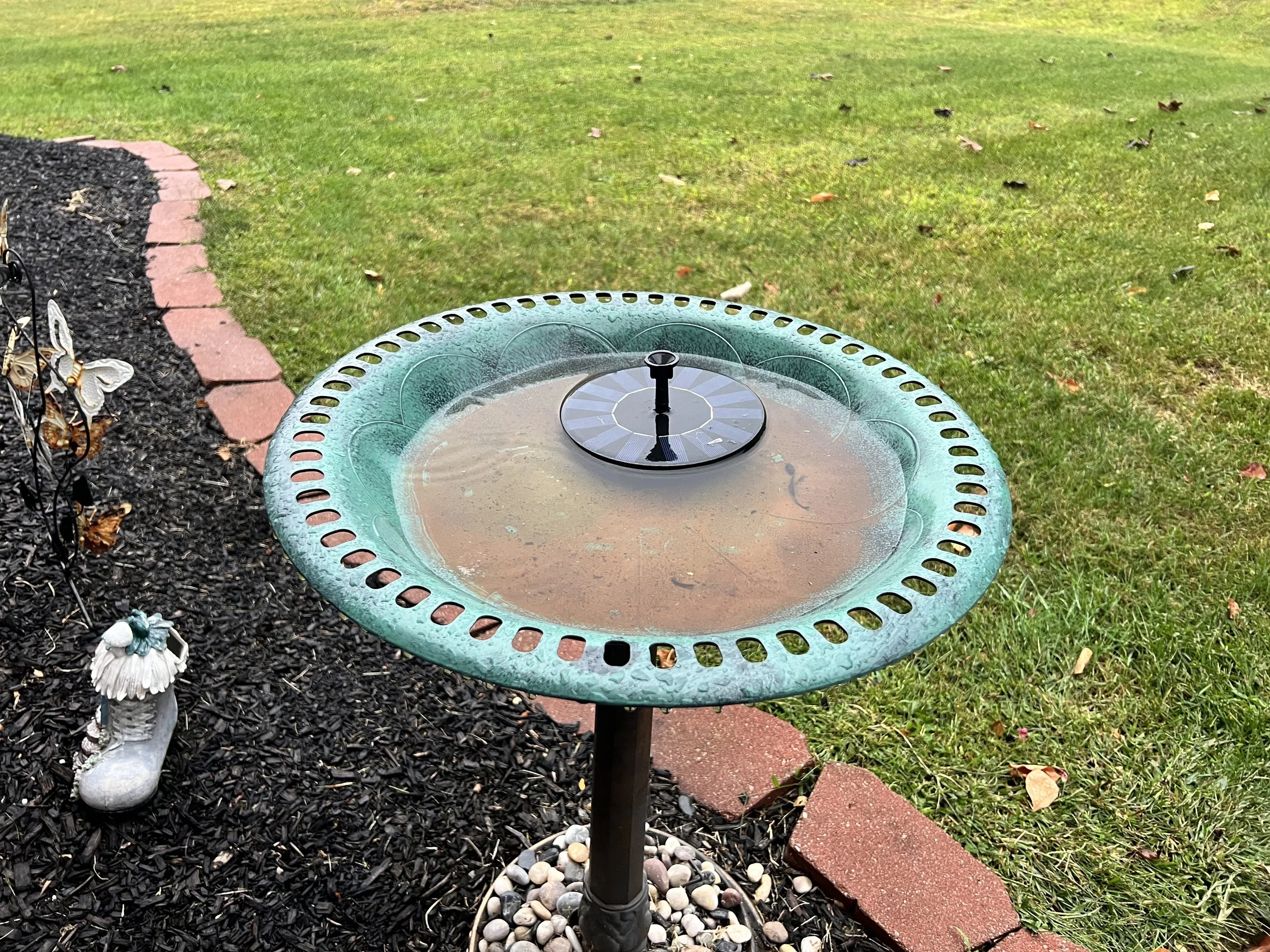 This was after a sprinkle. Notice the “clear” water above the rusty, dirty stain in the bird bath. The clear is the new water. Still at the same depth today.