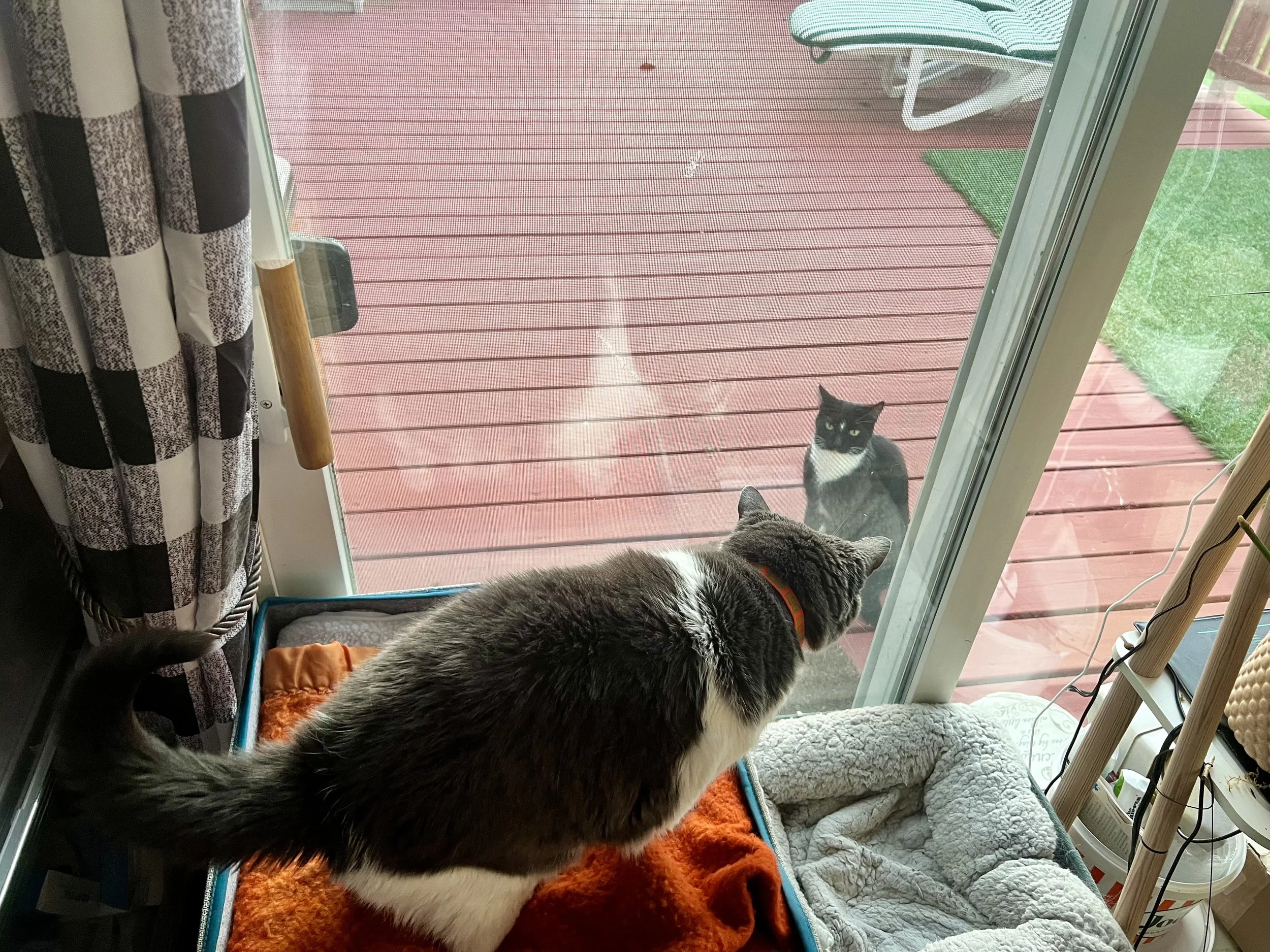 As for the outdoor cat, I had to go outside and chase it away. It wasn’t afraid at all and sat there like it was watching a familiar TV show.