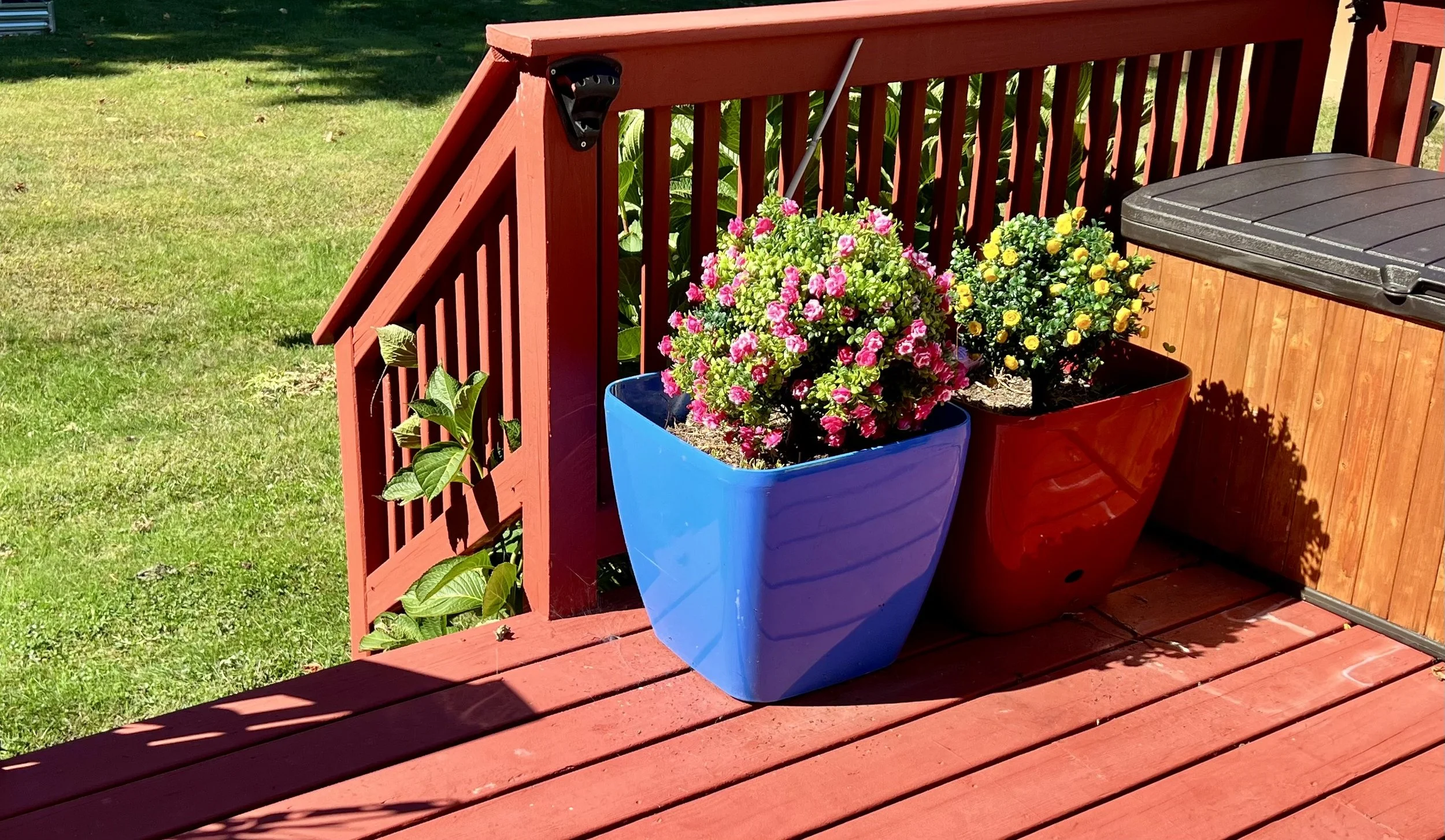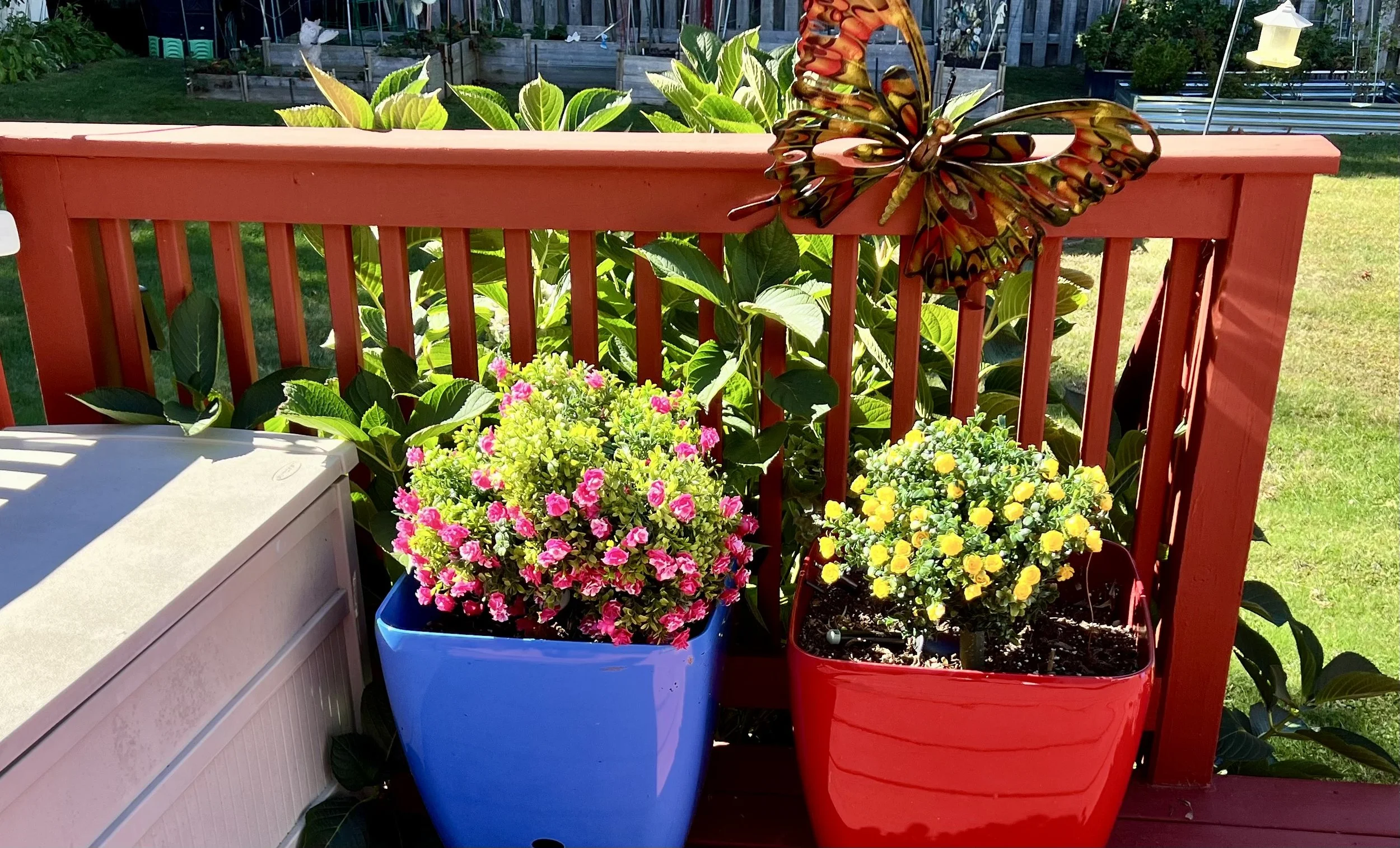 And to add a little color out the back patio door for the winter, I planted “roses” in the self watering planters.