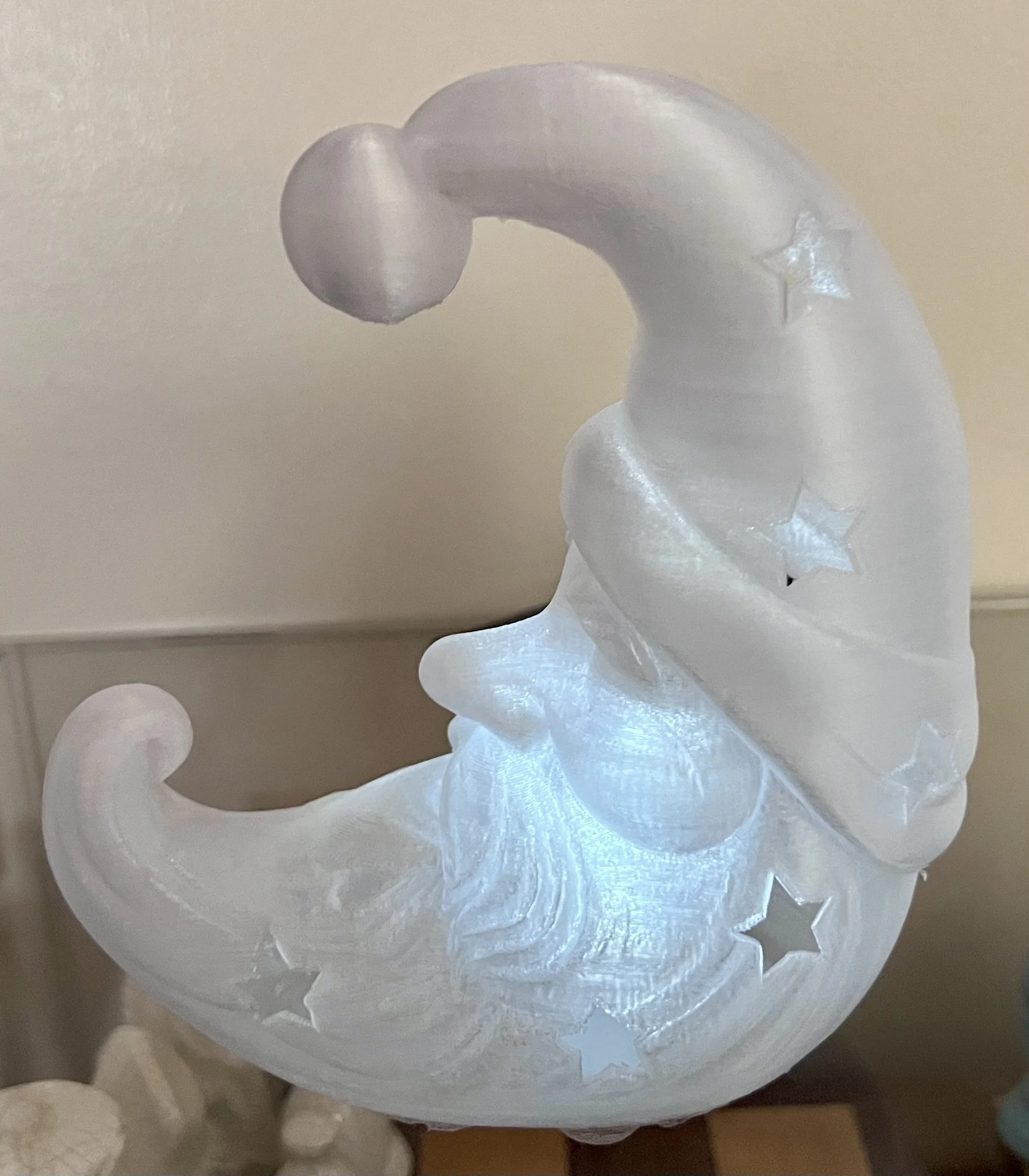 I don’t have a decent picture of just the gnome seen in the center of this shot, but he was printed in the cotton candy filament too.