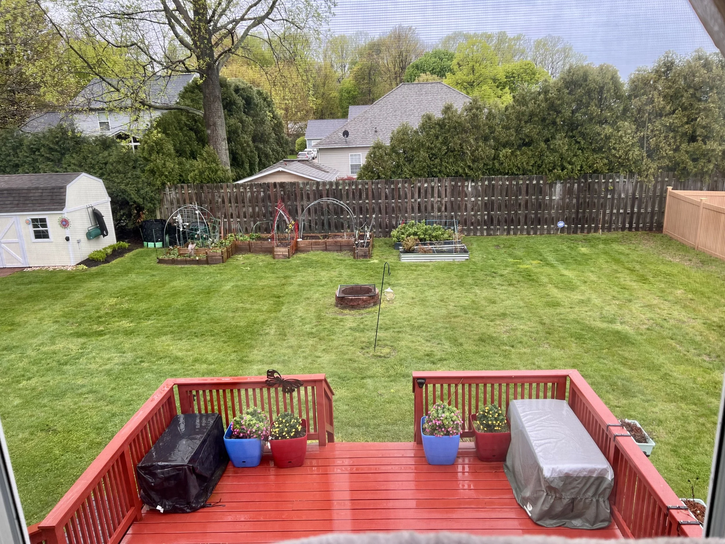 This solitary tomato plant survived its exile in the garage for the last 3 weeks waiting for freezes to stop, and for me to get the energy to plant it. The others are shriveled up and are now in trash. I ordered a few new ones which will arrive in next week. This is a yellow tomato. My favorite. I’ll only plant a few more tomato plants this year. A lot fewer than years past.