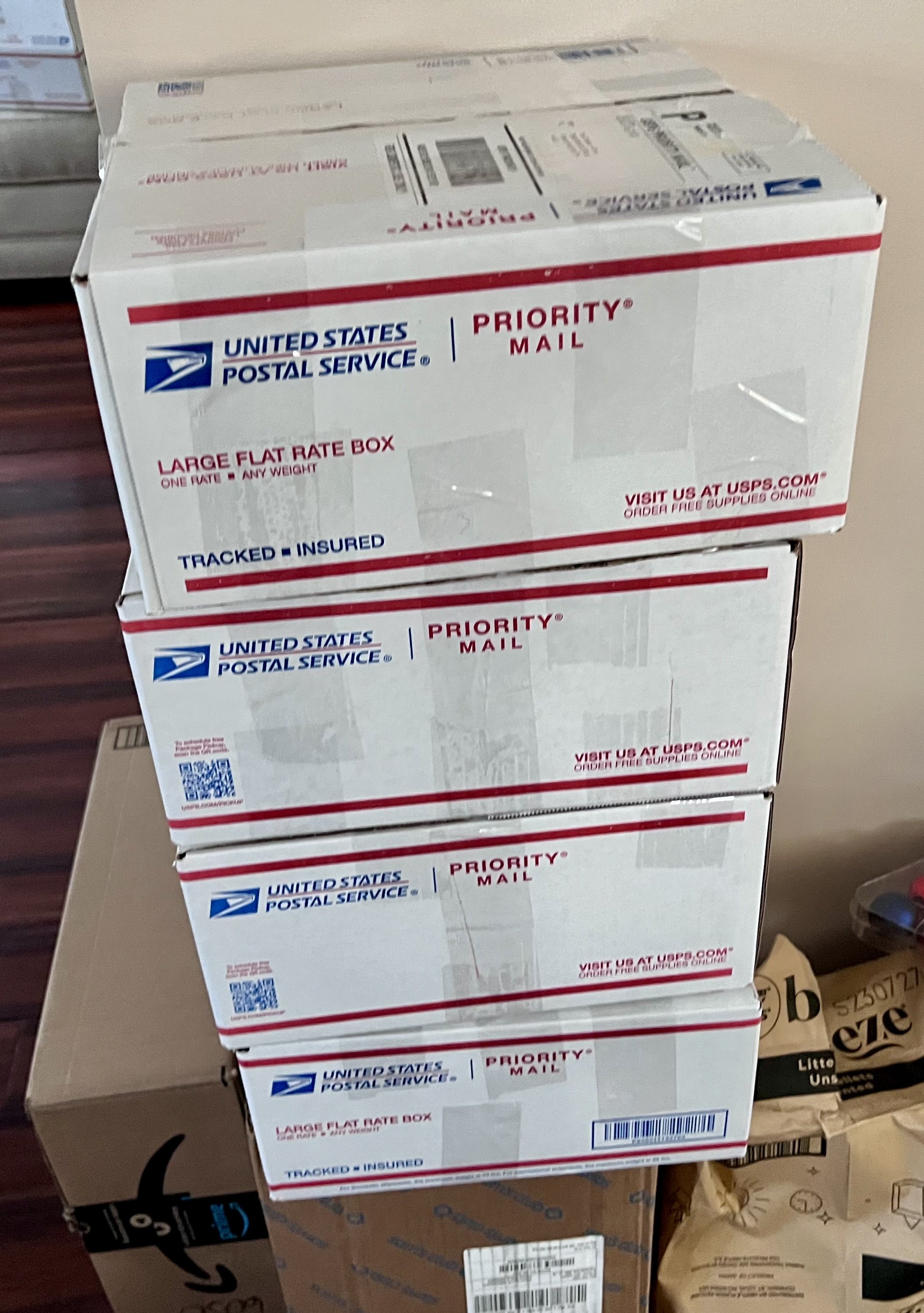 So with the headache subsided, and a couple of good short night naps, I am back to getting these piles of thingies and boxes assembled, and ready to go postal. Hmm, not sure if I mean the boxes will be going with the USPS, or I may go insane. Maybe it means both.