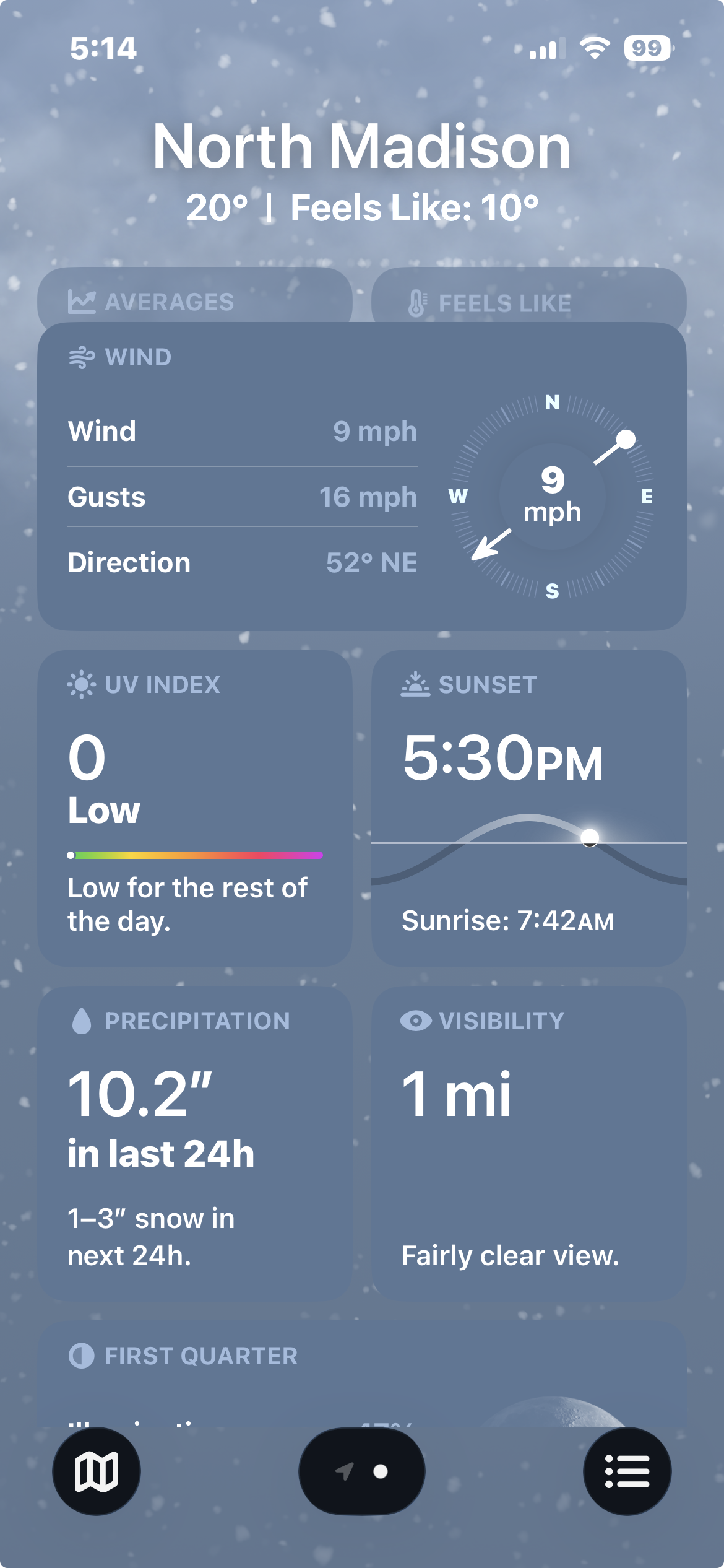We may see the 20s next week. Somehow that is going to feel warm, if the winds stay away. Oh, do notice the Air Quality at the bottom 56 is what they refer to as Moderate. Other sites say that is “Poor”. Either way it means it is not good for "sensitive” people to stay out there. Yeah, that’s me — poor lungs. It has been in the above 50 range quite a few days of this mess.