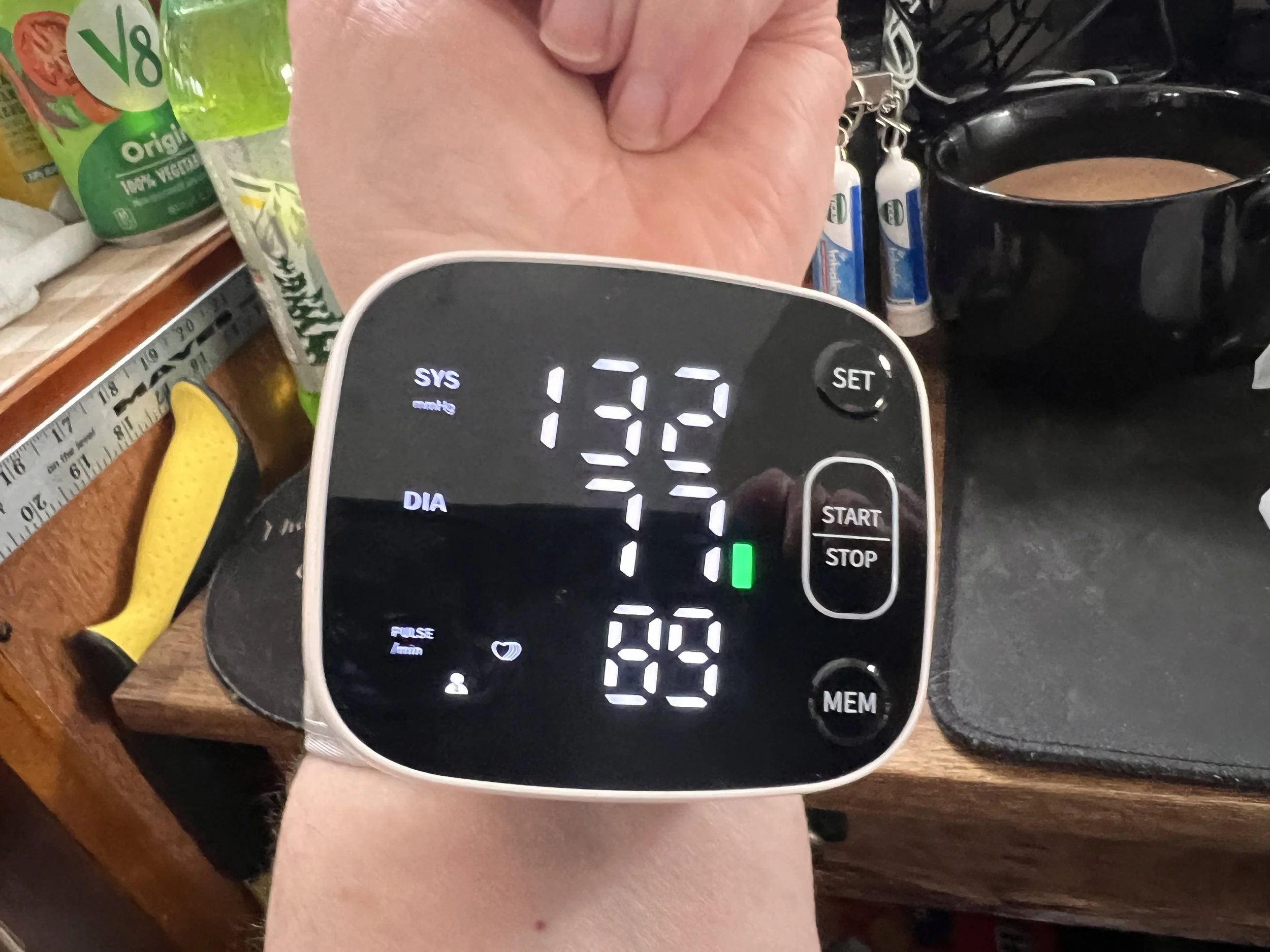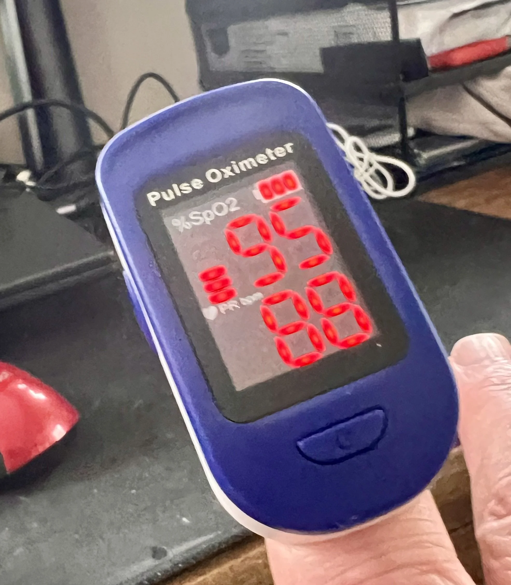 Lousy photography, but still can be ready. Blood O2 was at 95%. Not perfect, but for an old human, above 90 is considered good.