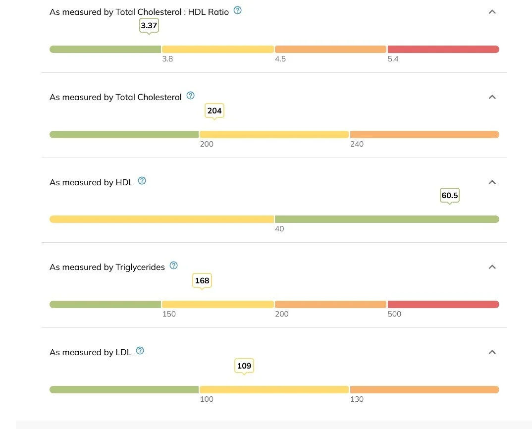 As a whole, I’m reasonably okay for a fat old man. One thing I’ll say about choosehealth.io and their results are, they seem to totally ignore my age, but sure do dwell on my weight. The experts expect seniors to have numbers a little higher than people in their peak ages. And choosehealth “chooses” to have categories that don’t even use blood testing results, and flag them as “Highly Elevated” in RED because of what I told them my weight is. Shoot, if I lied and said I was 5’ 10” and 150 pounds, there would be some super green tags instead of the reds.