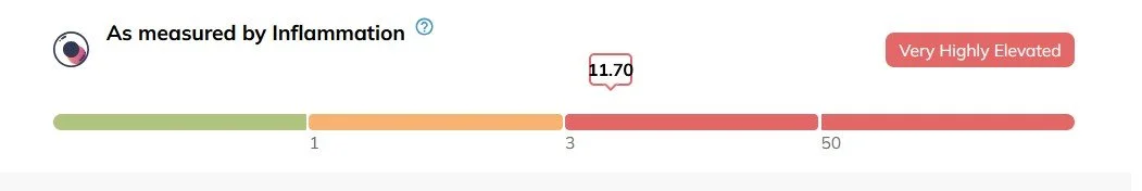 And my bad number — or is it? This blood test measures the C-reactive Protein level.  It was 11.7.  Levels above 10 may indicate minor inflammation or viral infections.  Above 50 would be really bad.  In seniors, arthritis, IBS, obesity, sedentary lifestyle, insomnia, depression, Stress, and minor injuries, could push it over the 10 which is acceptable.