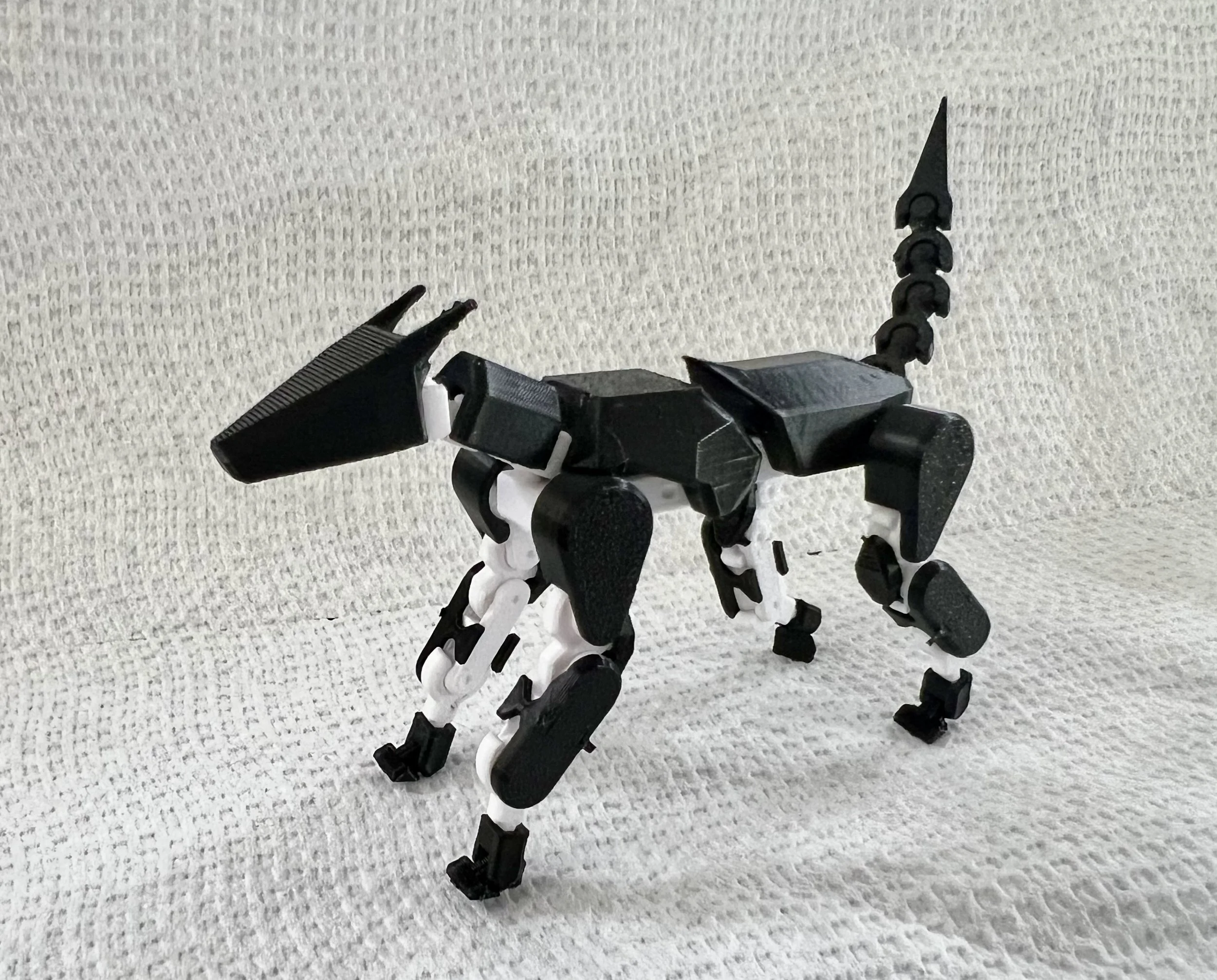White PETG skeleton and black PLA armor.