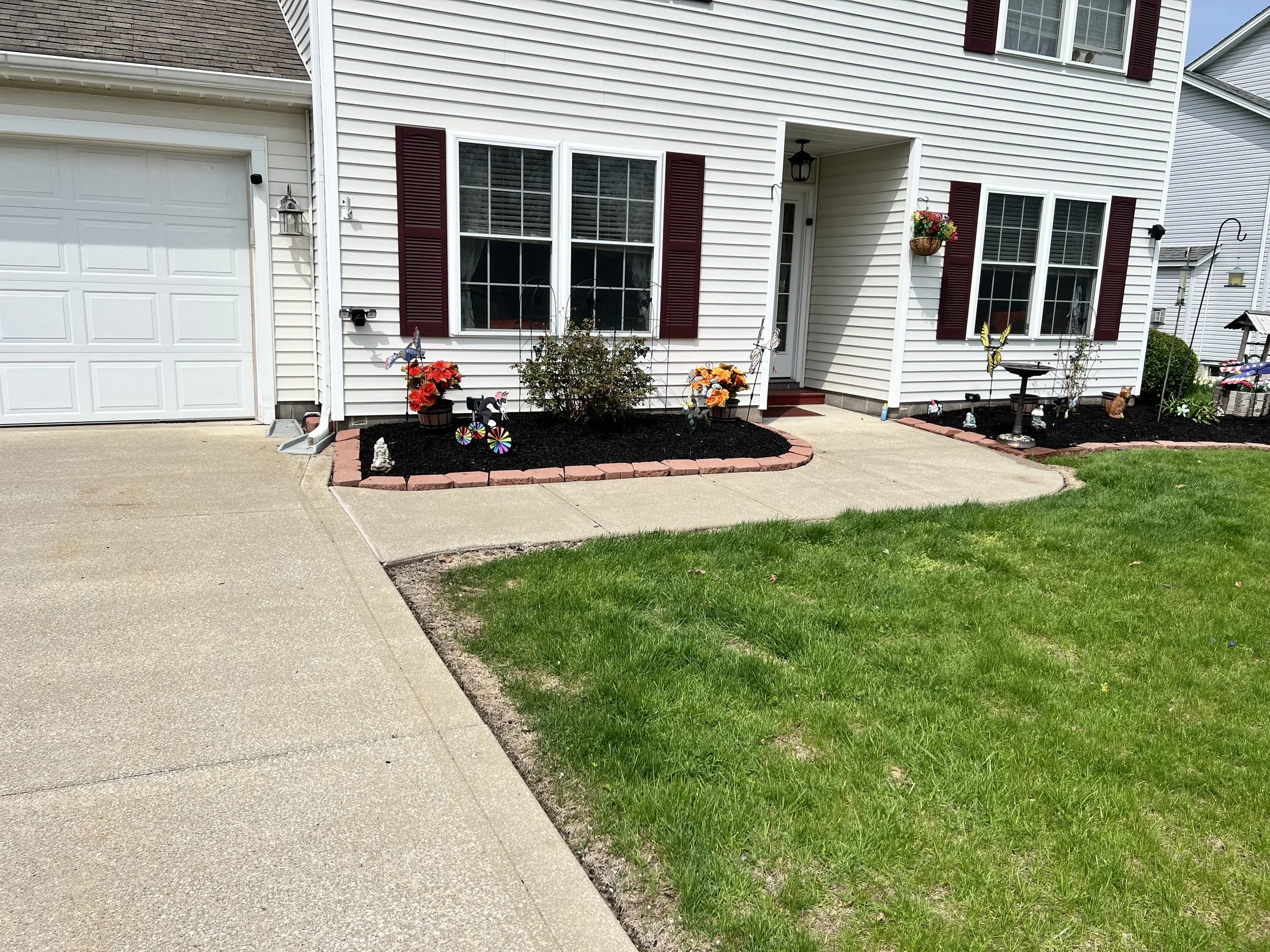 Bob re-trimmed this shrub, and the one on the other side of the house too, making this look really clean and neat with the new black mulch.