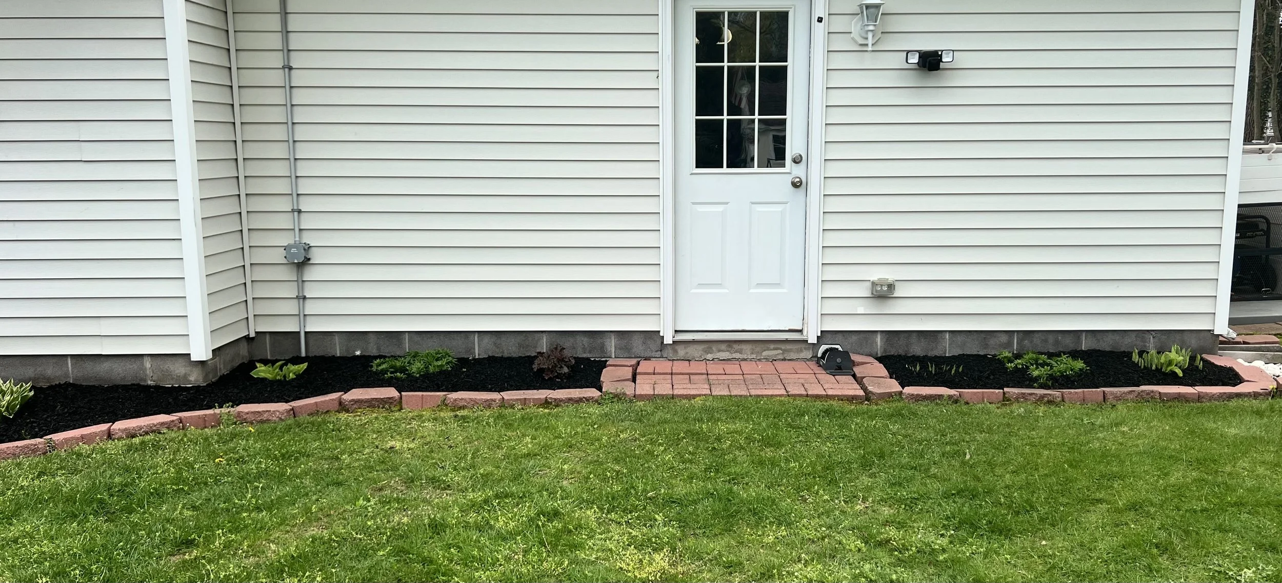 And the results are great. These back of garage beds have perennial flowering plants that are just beginning to make their presence known. Tidy and weed free now.