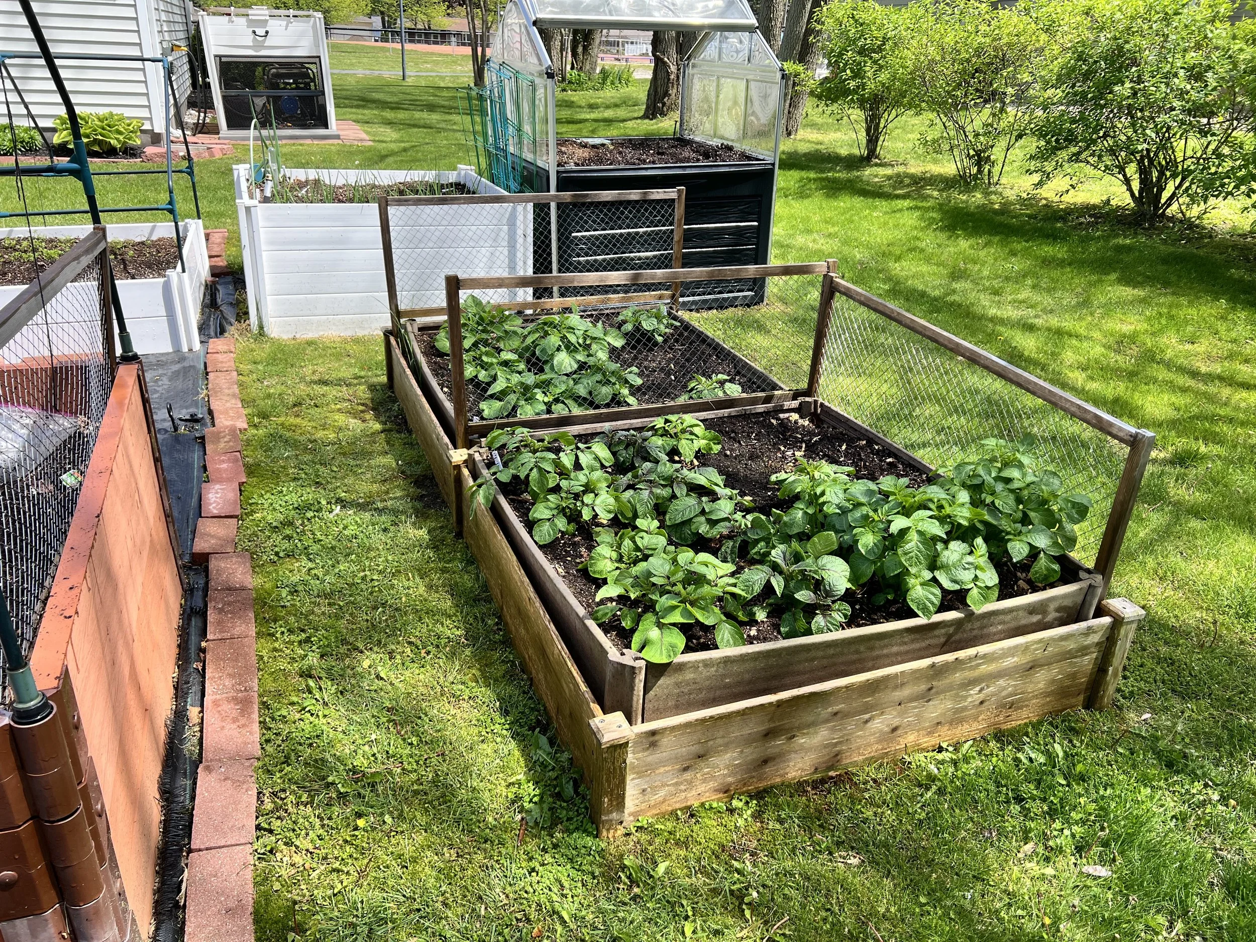 I recovered with the help of some nasty smelling ointments, and then went back out and transplanted 9 tomato plants and 3 peppers and 3 cucumbers and one lonely melon. Also about 20 soaked bean 🫘 seeds. Yellow and purple and green bush beans. I remember reading somewhere that if you soaked the beans for a day or so prior to planting, that they would sprout quicker. We will see.