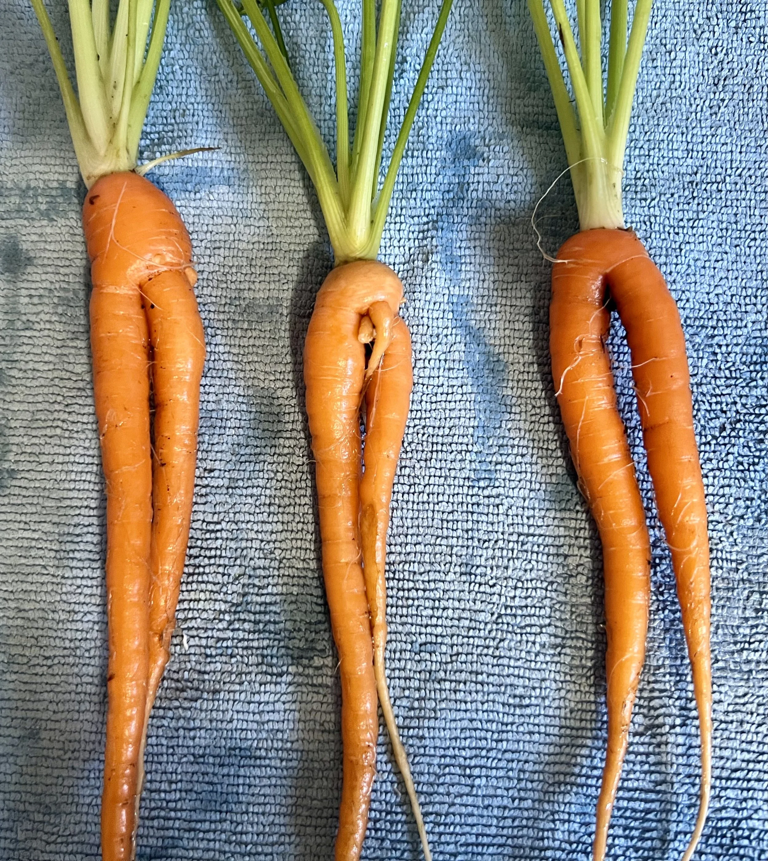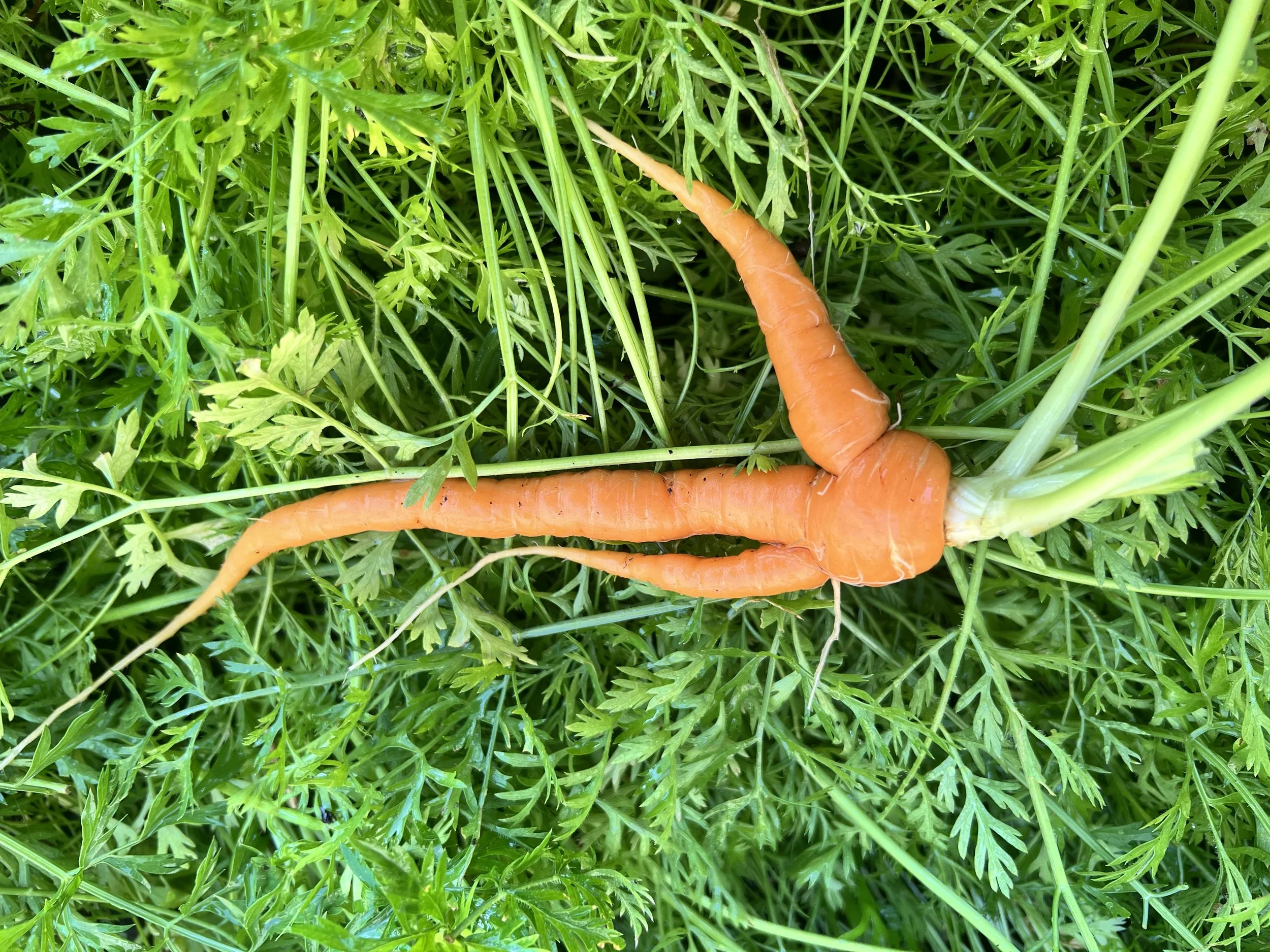 One of the multiple legged carrots. I had to dig some up after pulling by the plant was ineffective.