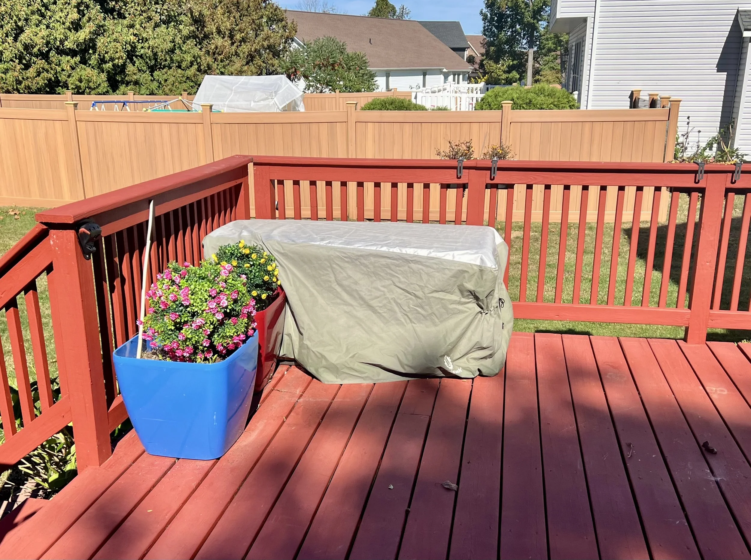 The deck box away from the house has planting / potting soil and stuff for the planters next year.