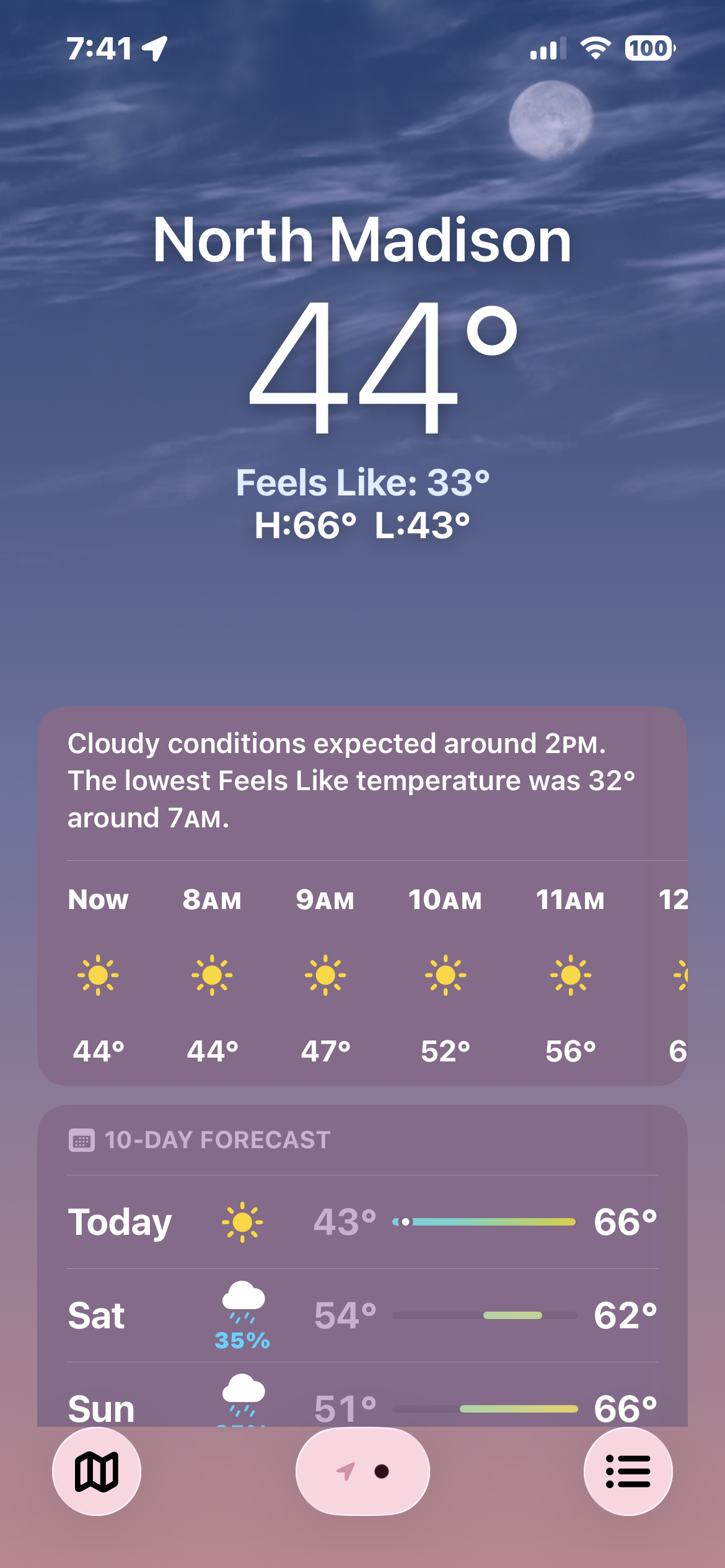 I got up this morning to this. Notice that “real feel” temperature — a solid 33 freedom degrees — That’s like 0.5 degrees Celsius.