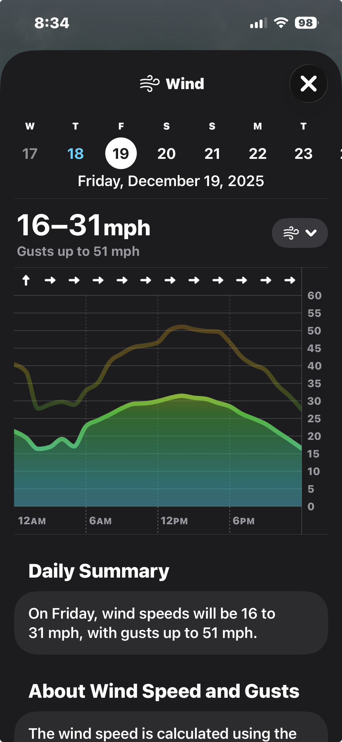 Howdy all. We are having a break from deep winter, today and tomorrow. Temperatures “soaring” through the 40s, and even possibly getting above 50. Of course rain is also in the forecast. And the wind gusts will “soar” into the 40mph+ range today, and the 50mph+ range tomorrow.