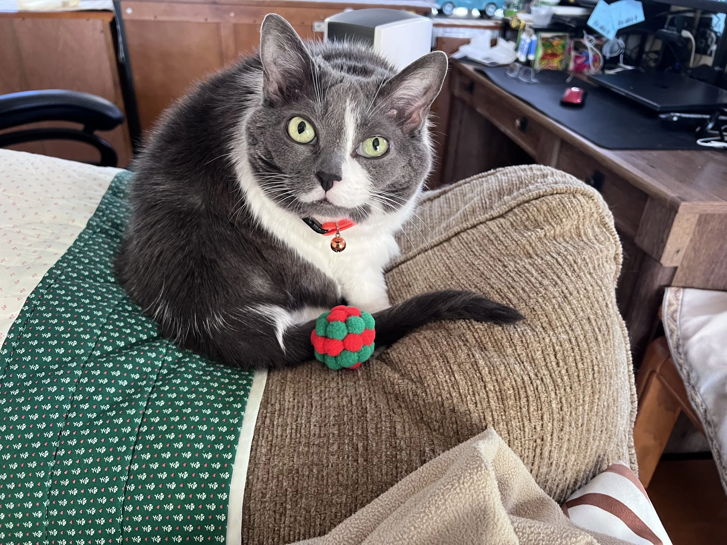 Kitty has been getting a gift every other morning this month from the Advent calendar his cousins down south, sent to her.